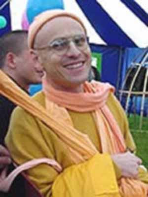 known. Srivas that day got such a shock that he changed his life, and he became serious about spiritual life and he stopped this and that and whatever else was going on. Then when the day came , it was very suffocating and hot that day , he was inside the house and he could not get any air. So just for the moment he went to get a little fresh air , and as he was at the edge of the balcony he became overwhelmed by some dizziness and before he knew it he fell over the edge. Just as he was falling down in free fall approaching the ground just then – someone caught him. And then put him on the ground and walked away. He survived! So from that day on Srivas completely dedicated himself to spiritual life, and become a very serious devotee. He had a big change in his life. I think it's interesting because Srivas is representing the jiva – the living entity and it was interesting that he had the little moment in his life – I guess as a role model that makes him a little more approachable. It shows he went through sort of what we are going through and he made that turn around. Just as we also are meant to turn around. Srivas came to his senses. He became a great extraordinary devotee, of course he always was and he was just temporary covered by some arrangement of the Lord. And his original Krishna consciousness again came to the surface – this is the nature of Krishna consciousness.(03/2009-Leicester,UK)
